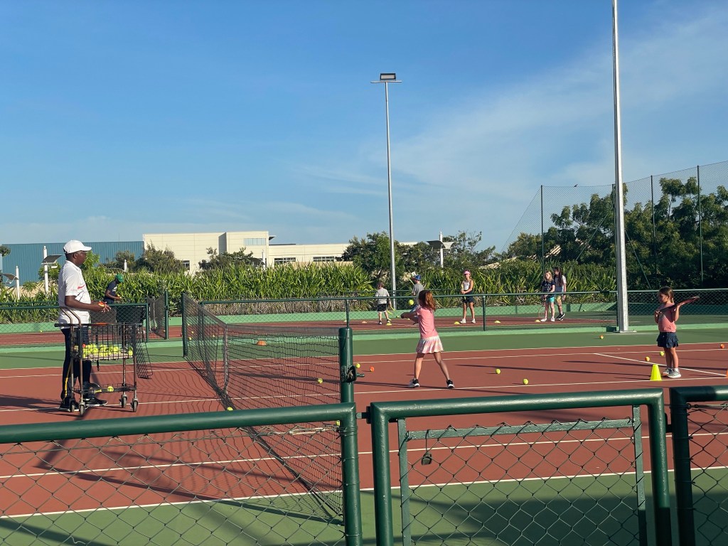 Other notable events this week are that three out of the four of us have started tennis lessons. Lucy’s group lessons are Monday and Wednesday in the early evening and Hudson’s group lessons are Tuesday and Thursday. Both kids are enjoying it so far! I play with a group of ladies on Monday and Wednesday mornings. The lessons are fun, but also really technical. Coach Joao (pronounced Joe-ow) is a stickler for technique so I’m having to unlearn some bad tennis habits I wasn’t even aware I had. Tennis is also very social given we play in groups and the parent chatter that happens while the kids are practicing. It’s a nice way to wrap up the day before heading home and starting dinner.