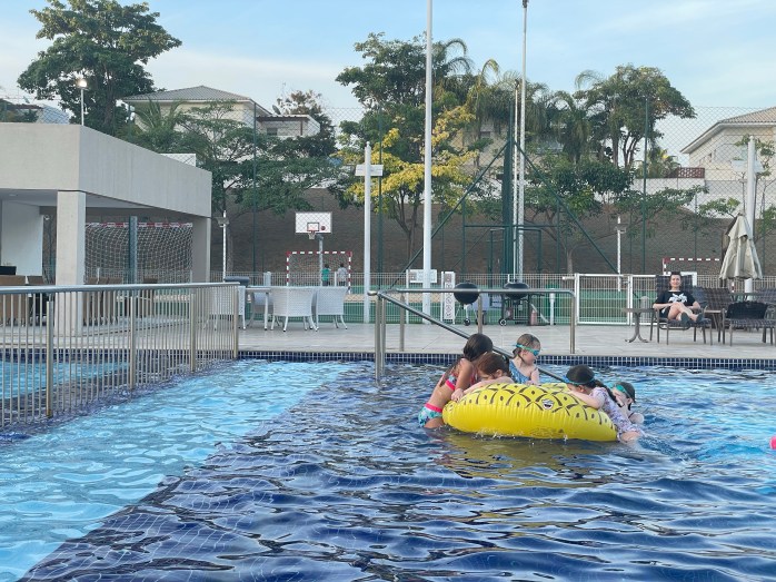 Fridays are nice because there are no after-school activities and it truly feels like the weekend has kicked off. The kids and Jordan went to the pool for a bit that evening. Saturday, we went to what I call “the beer place” for lunch. Technically it is called Cerverjaria Pur Malta and they usually have imported beer on tap except for the Saturday we went which was disappointing. Oh well, we had caipirinha’s instead (which quickly becoming my favorite drink here) while the kids played card games and had plank and push-up contests with their friends. The food was good (Hudson gave the hamburger two thumbs up) and I expect we will be back.