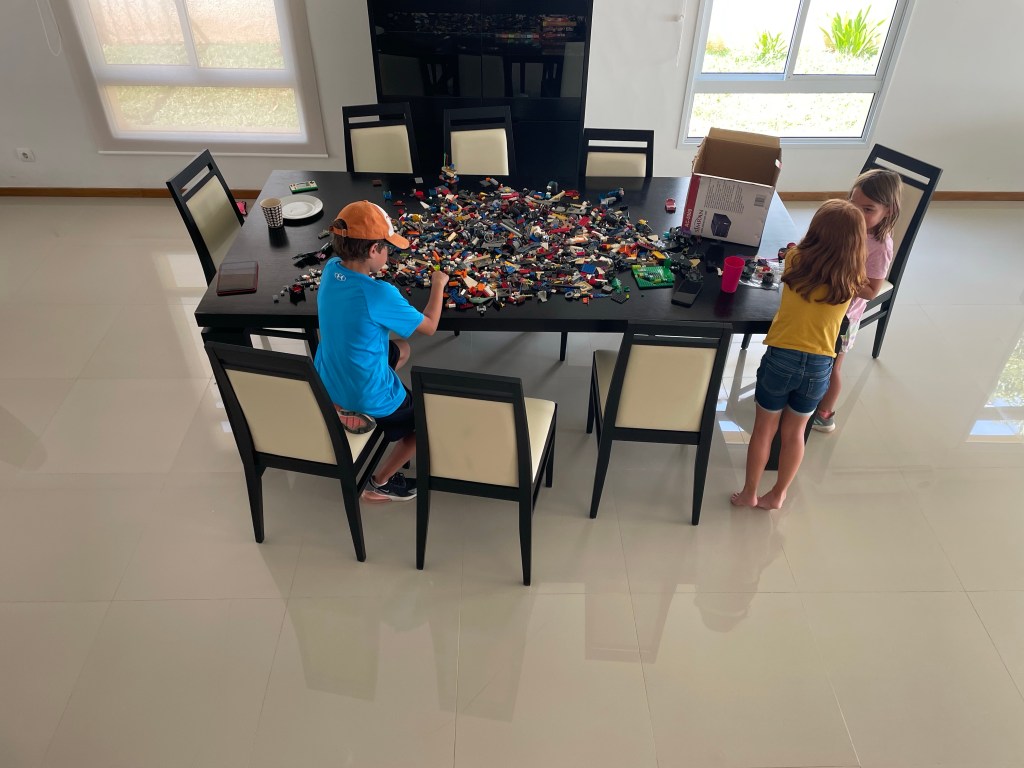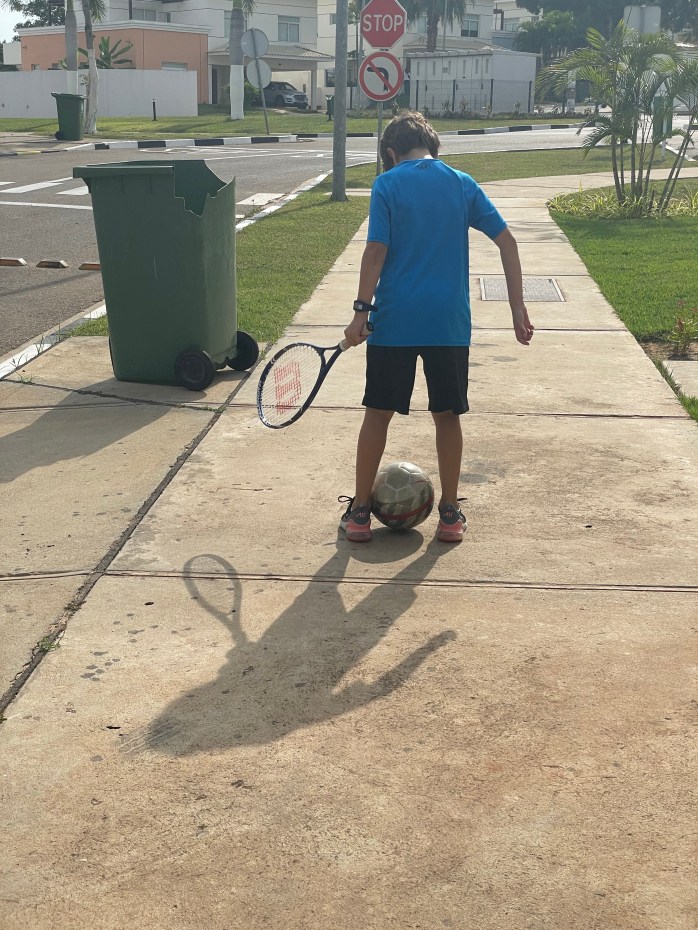 Jordan went mountain biking again on Sunday and rode 43 km (26.7 miles). He had a fall and is a little sore, but I can tell he is proud of his war wounds. The kids and I were lazy most of the day Sunday. I prepped my usual food – made hummus, boiled eggs, and cut up fruit – for the week. Lucy had a friend come over to play and they pretended they got married. They also pretended they honeymooned in New Mexico. I can’t say that would be my first choice of a honeymoon destination, but they seemed cool with it. Lucy said “it’s what we both agreed on.” They are already learning how to compromise in marriage. Hudson was able to play Xbox with some friends in Houston. While I’m not the biggest video game fan, I do appreciate that he is able to keep in touch with his friends at home though them. Around dinner time we FaceTimed family. After watching a Lego Masters, everyone went to bed ready to start week five in Luanda.