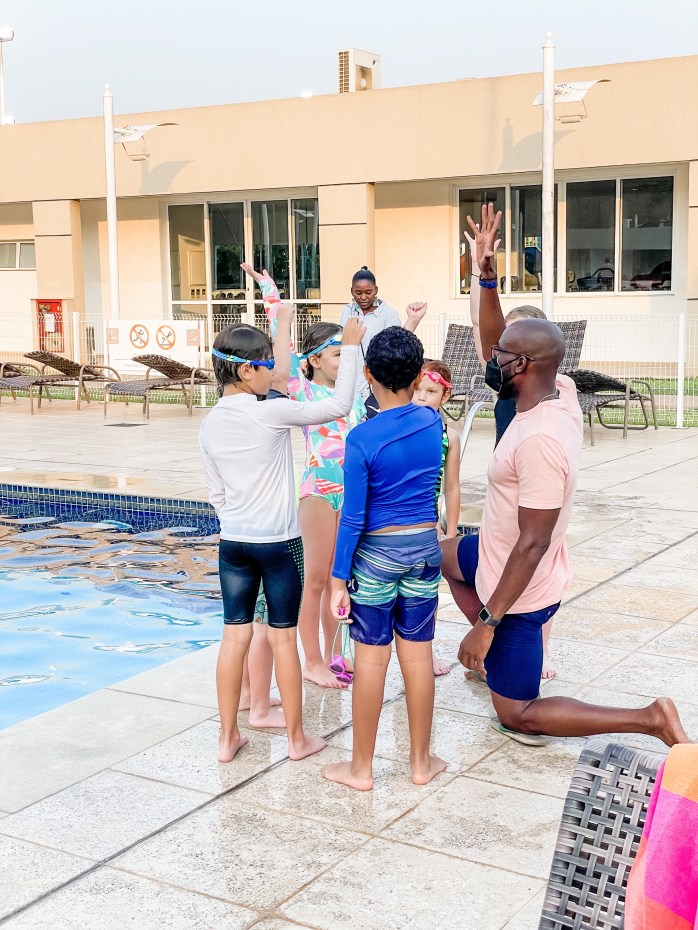 On Tuesday, the kids started swimming with Coach Joao. There are a lot of Coach Joao’s in our life as this is the name of their tennis coach, too. Swimming Coach Joao went to the Olympics in 2000 and seems to be a great instructor. For the first thirty minutes of their 1.5 hour lesson, they did conditioning drills that consisted of squats, push-ups, running, and crunches. I don’t know much about swimming, but Joao had them working on technique and was great at explaining what they needed to do differently.