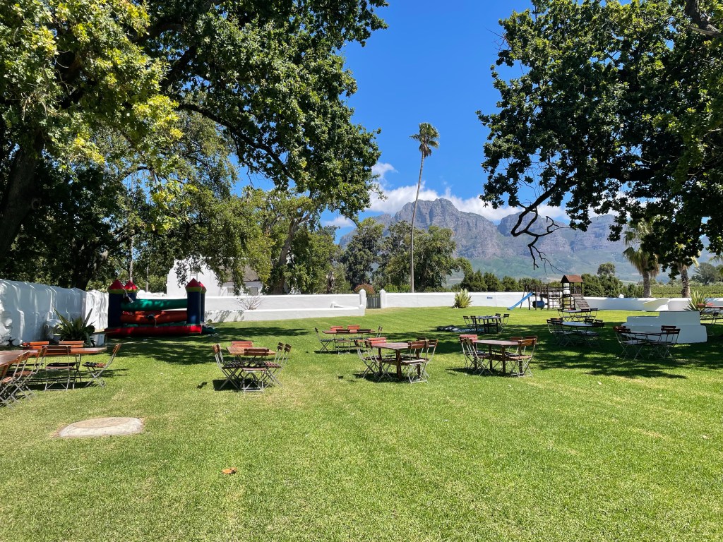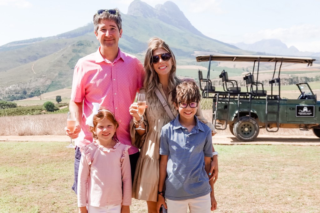 We left the house around 9 am and headed to the wine country which is about one hour east of Cape Town. I was hesitant to head out to the vineyards on this trip because we had the kids and typically I wouldn’t bring my kids with me wine tasting. I’m finding out though that other countries are much more accommodating to children than America is and activities are provided to keep them entertained.