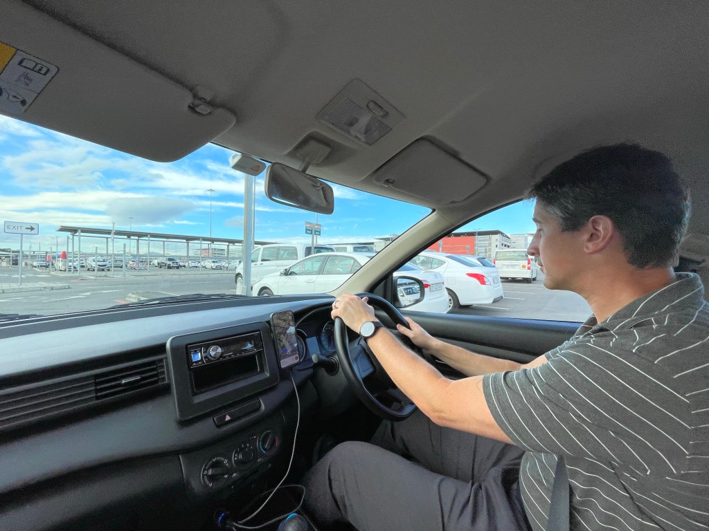 The rental car! Jordan keeps saying he is driving on the “wrong” side of the road. I’m trying to say we are driving on the “other” side of the road because it’s not right or wrong… just different. The other interesting thing is that our rental car is a manual transmission. Neither of us have driven a manual transmission in quite some time. Add in the hills in Cape Town and it was an experience getting to our AirBnB. Jordan did great though. I think the most disconcerting part of the drive was seeing cars coming at you on the other side of the road. My instinct was telling me they were in our lane, but obviously that isn’t true.