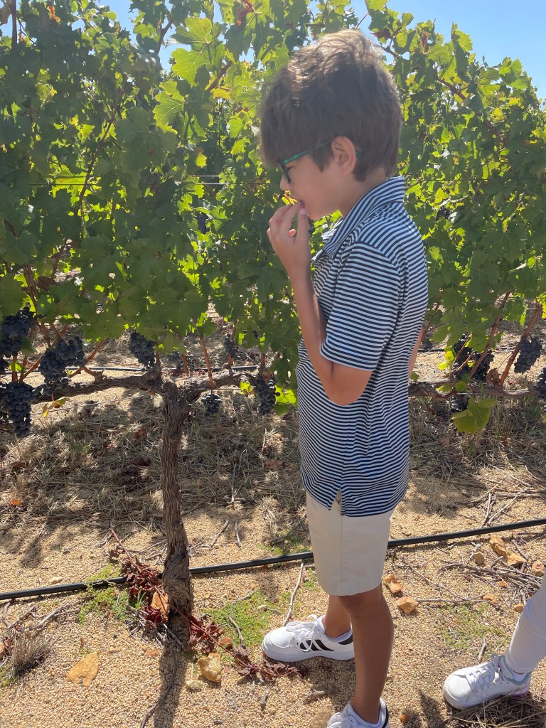 While we tasted the wines, the kids played on the playground. I can’t get over how family friendly these establishments are! After our tasting at Warwick, we headed to Allee Blue for a picnic. Once again, there was a bounce house and a playground. Jordan and I sat and chatted while the kids played. They brought out our picnic and while the kids weren’t all that thrilled with their choices, the adults enjoyed it. I feel like our photos don’t capture the true beauty of this area. I hope we come back!