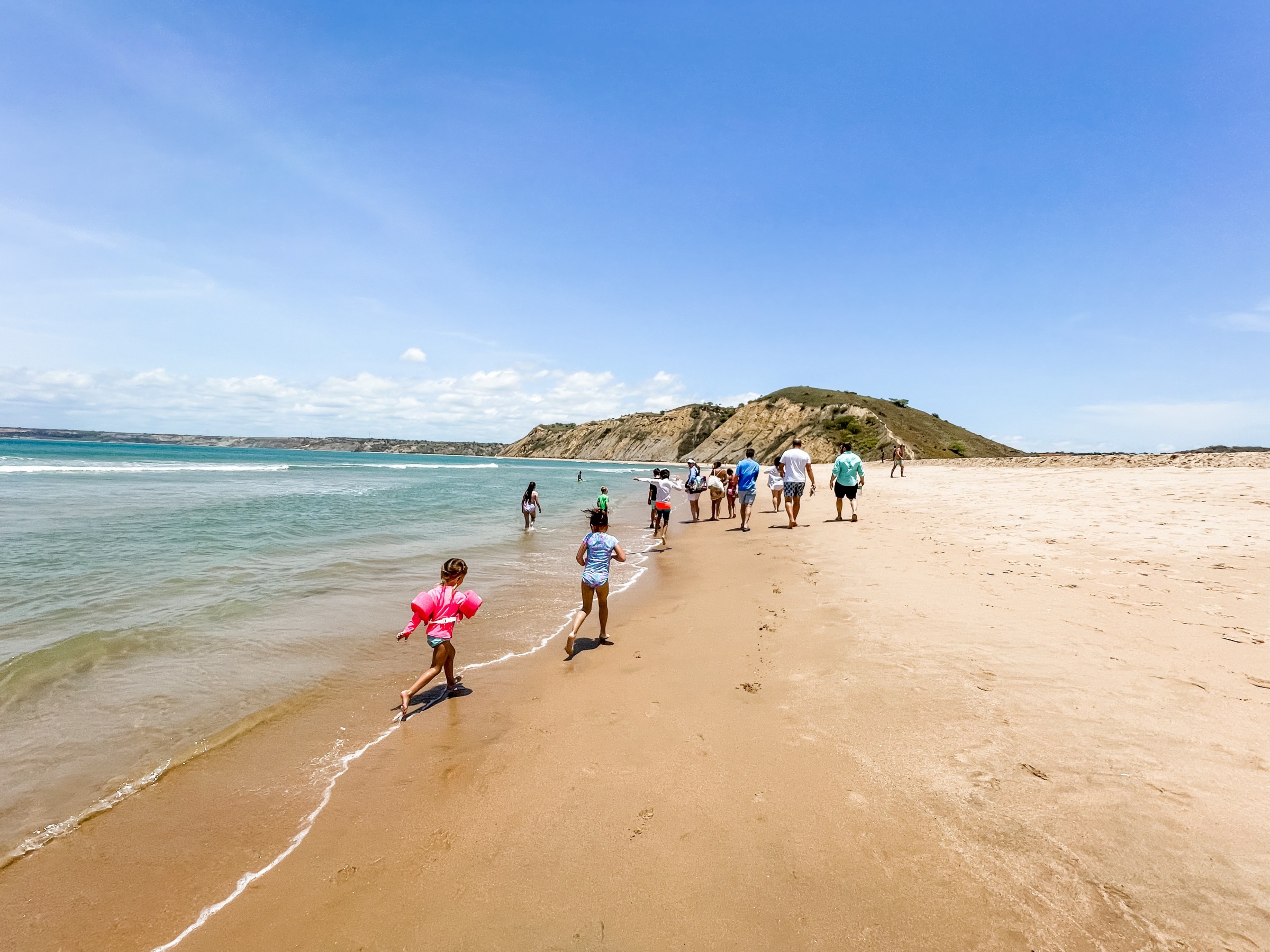 Saturday, we met up with several other families around 8 am and headed to Cabo Ledo. Cabo Ledo is roughly 2 hours south of Luanda and the drive was beautiful. We first went to Praia dos Surfistas (Surfer’s Beach) and were amazed at how pretty and fun it looked. The sand isn’t white, but the water is crystal clear although a little chilly. Hudson also loved the large rocks on the beach and found a few “caves” he and his friend, Lucas, explored. There is a small restaurant you can order food and drinks from as well as cabanas you can rent for the day. They also provide surfing lessons (Hudson said he wants to do it next time!) for about $14/hour. The surfing looked like fun. I might even try it next time we are there. We stayed for about an hour and then headed to our reservations for lunch at a resort, Carpe Diem, nearby. We estimated it was about 15 minute walk (maybe 25 with kids), so we sent the gear with the drivers and started walking. The walk ended up being more like 35-40 minutes, but it was enjoyable. The restaurant has plenty of room for the kids to play and the beach was close by. The parents took turns watching the kids when they were in the water. While the food at the restaurant was delicious, the service was inconsistent. It took me 1.5 hours to get my first caipirinha and lunch overall took about 3.5 hours. It was ok as we weren’t really in a rush, but it did make for a long day. I think I would only go back to Carpe Diem if we had a reservation for the night there. If we were just going for the day I would stay at Praia dos Surfistas.