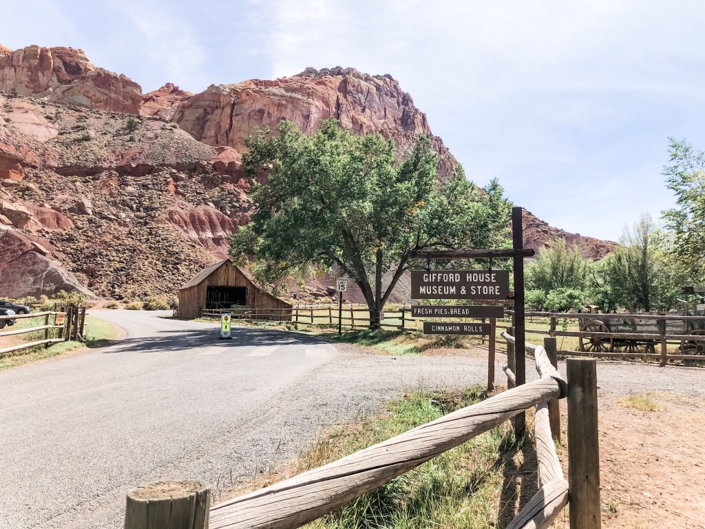 We ate our picnic lunch at the trailhead before heading off to the Gifford house to buy pies. Pies in a national park? Yes! The Gifford homestead is in the Fruita valley, which is a desert oasis that is fed by the Freemont River. Settlers here grew fruit trees, hence the name, and there are still orchards here to this day. The lushness of the valley against the desert horizon was such a beautiful contrast. The Gifford house operates now as a small museum and store that sells dried fruit, jellies, jams, homemade pies, and ice cream. I was really hoping to get a bite of someone’s pie, but the pies were sold out by the time we got there. The kids and Jordan had ice cream instead. There were some horses nearby the Gifford house so once the kids were done with ice cream, we walked over to look at them. One horse came up to us and let us pet him (her?). I haven’t been around a horse in forever and forgot what magnificent creatures they are. As we were walking back to the car, Lucy said she was asking for a horse for Christmas. I reminded her that we will eventually be moving to Angola and I didn’t think we were able to bring horses with us. She said she was sure we could ask someone and “they would make an exception.”