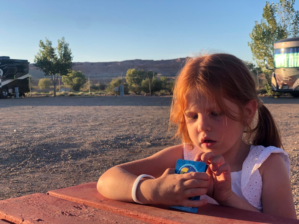 During this trip, we have learned when our kids are “done,” but we always push them to do one more thing. I’m not sure if that’s good parenting, but as adults, we always want to see and do a little more than they do so we drove to the Goosenecks Overlook to see the canyon. The view down into the canyon was impressive, but the view looking out from the top of the canyon was even better. I know I’ve said it before but, I don’t know why more people don’t talk about Capitol Reef National Park. If the kids hadn’t been with us, Jordan and I would have taken some more hikes, but it was late afternoon at this point so we headed back home. Jordan edited his photos (it was the first time we took out the “big” camera), I did laundry, and Hudson and Lucy played for an hour or so before dinner. After dinner, we played a rousing game of Go Fish, before we headed in for the night.