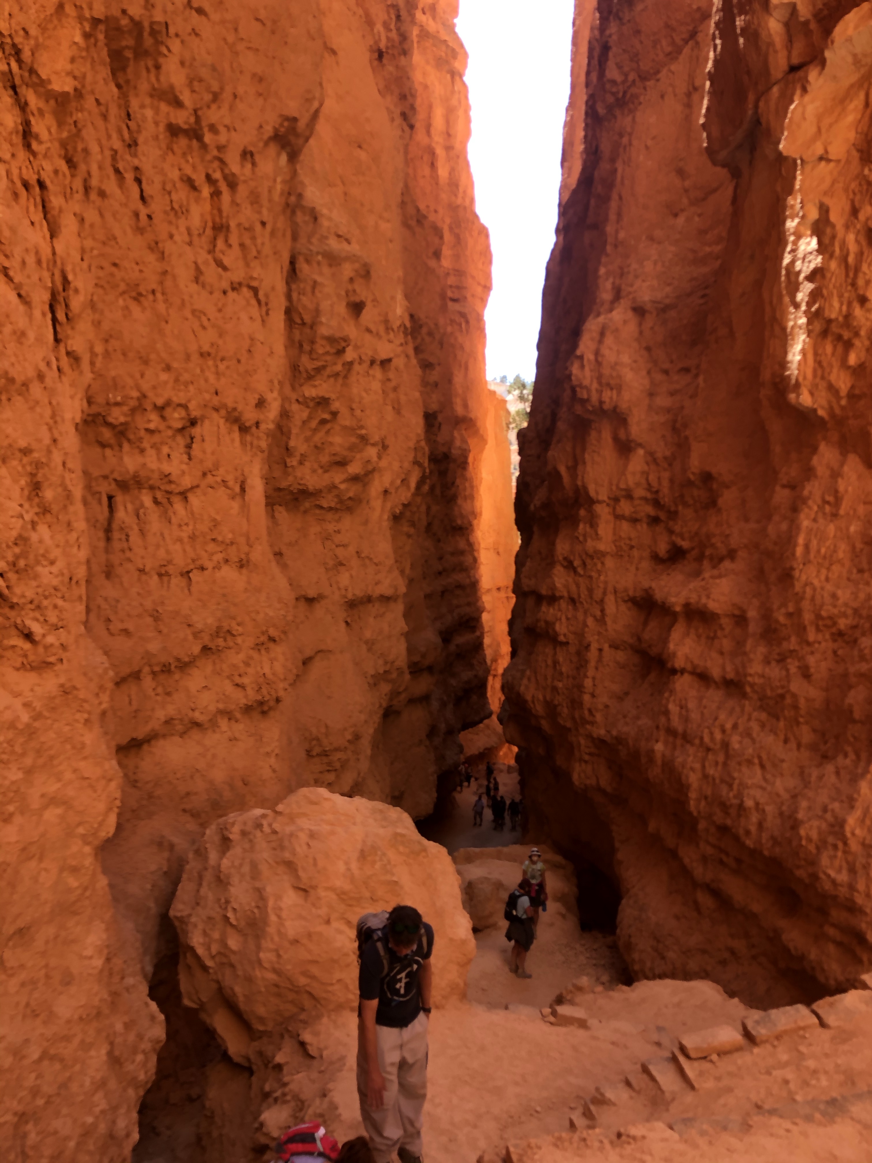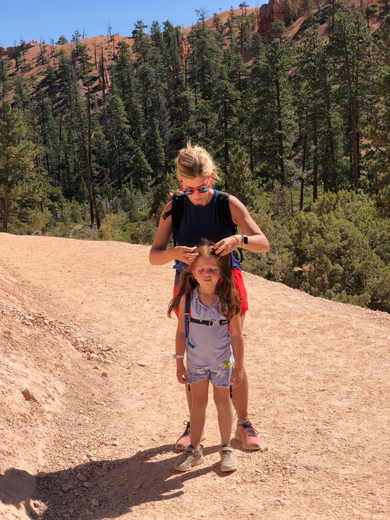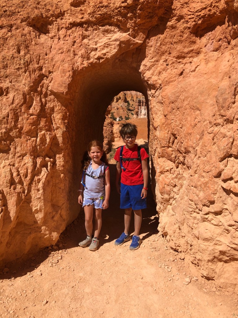 We didn’t leave for Bryce until 9:30 which put us at the trailhead ready to do our 3 hour hike at 11. I don’t know what it with us and starting hikes at 11. We followed the suggestion of a web site and linked together 2 hikes into one longer hike. This was our most advanced hike yet! It was just under three miles, but at the end you ascended over 500 vertical feet on switchbacks. The Wall Street slot Canyon was amazing though and while we had to stop to take breaks (and photos!) it was well worth the effort. We hit up two more viewpoints in the park and headed home around 3. Unfortunately, we were stopped on the road due to construction and we didn’t get to our RV until 4:45. After two full days of hiking, everyone found their corner of the RV and zoned out for an hour before dinner.