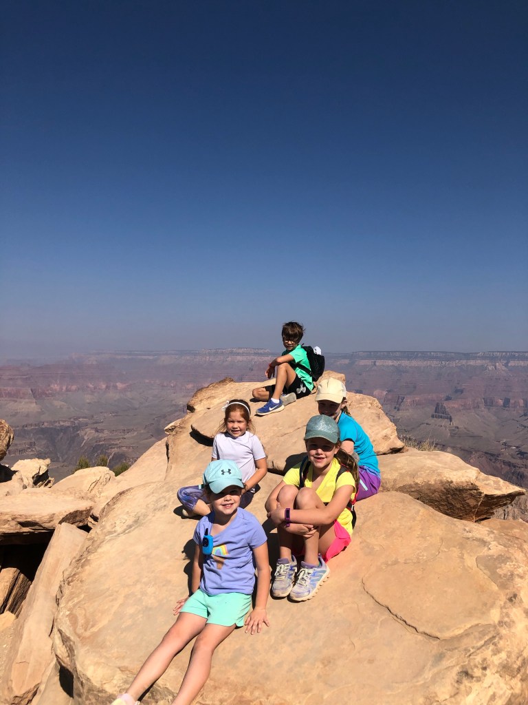 We made our way to the South Kaibab Trail to do a hike to the Ooh Aah point. We had a 9 year old, 8 year old, 7 year old, 5 year old and 4 year old. The hike is just under two miles total, but given it’s a canyon your ascent is on the return trip. After making our way to the ooh ahh point, which was pretty incredible, we started walking back up. The total elevation gained is 682 feet. That’s some serious elevation for a four year old, but the kids did great! And so did the adults! We stopped at the halfway point and had a snack. Once we made it back up to the rim, we took our cars over to Maswick Lodge and ate at their food court. I’m not sure if it was the food or how hungry we were after our hike, but it was a pretty delicious lunch.