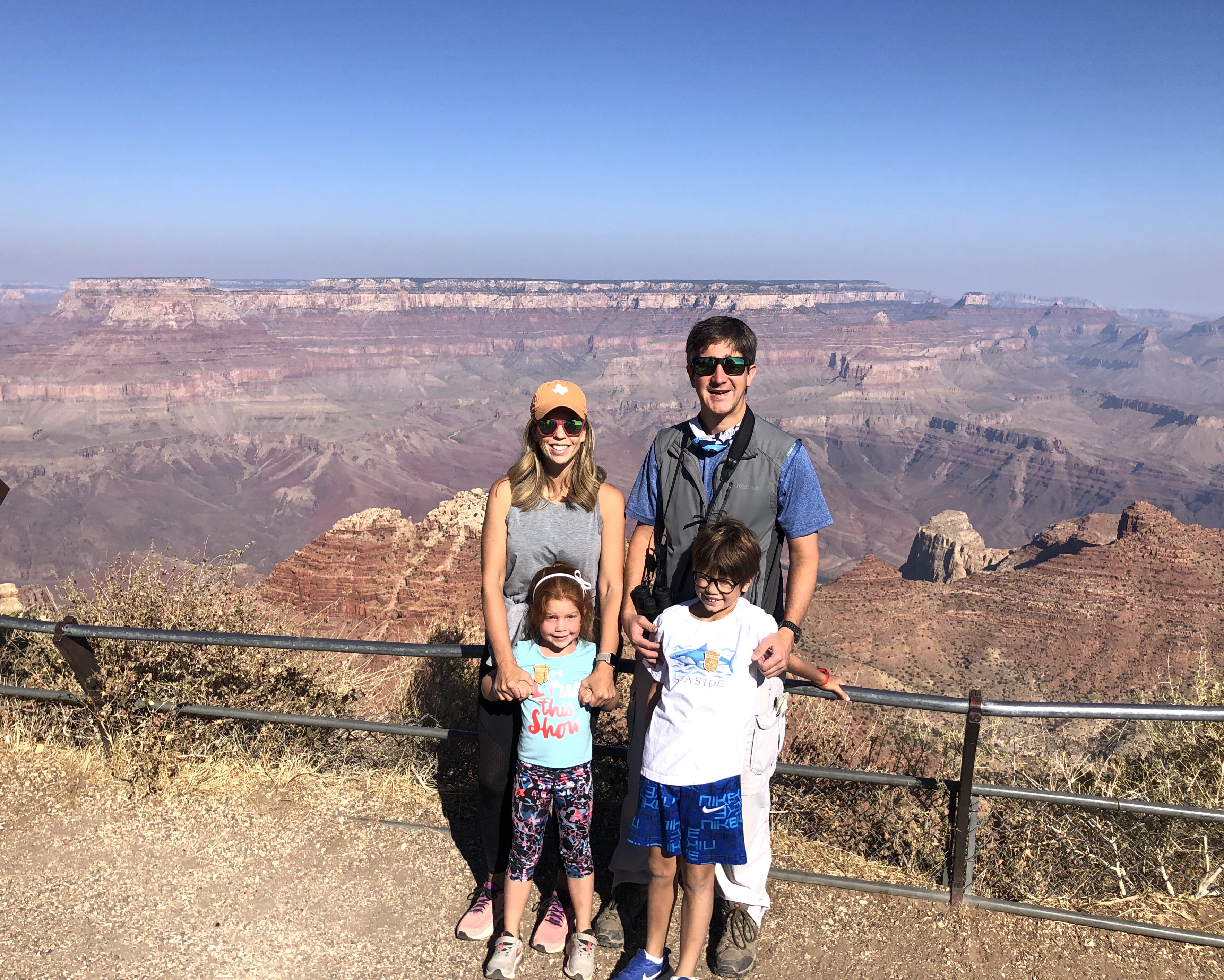 The Weavers met us at our RV park at 7:30 am and we headed to the Grand Canyon. We couldn’t find an RV spot closer so we are in Williams, AZ which is about 50 minutes from the visitor center. When we arrived the Visitor’s Center wasn’t too busy which was nice. We had our “first look” at the Canyon at Mather’s Point. I think I was about 10 or 11 when I first saw the Grand Canyon. I probably reacted similar to how my kids did which was “Oh, there it is. Cool. What else is there to do?”