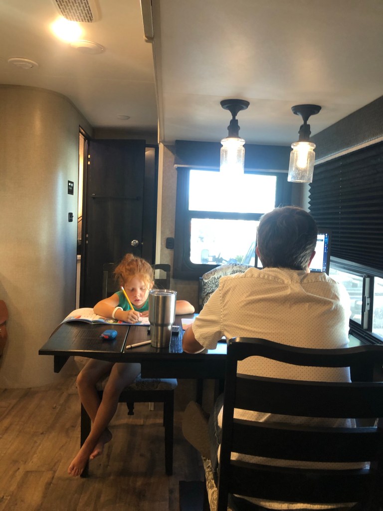 Today we drove to Williams, AZ. I would like to tell you how long it took us to get here, but did you know Arizona doesn’t participate in Daylight Savings Time? I’m so confused on times right now. All I know is that Monday our first Zoom starts at 5:45 am!