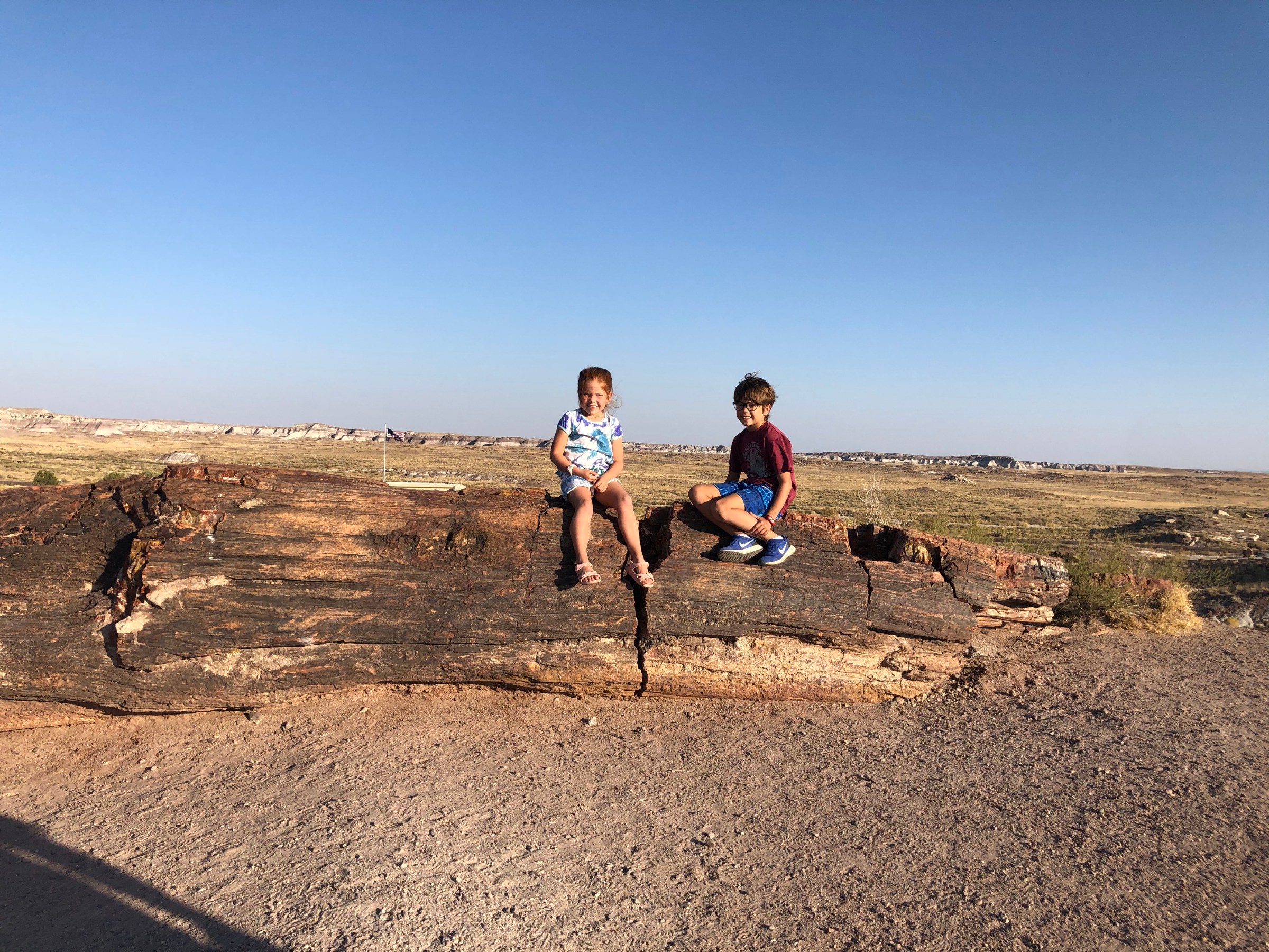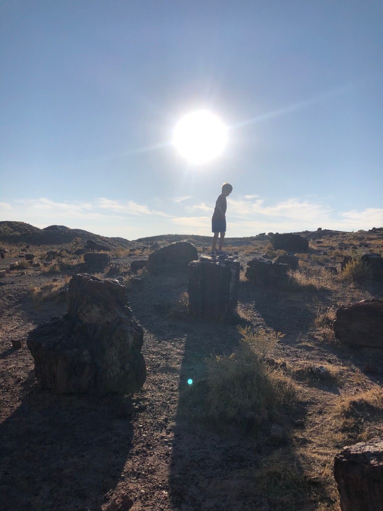 Deming, New Mexico. Y’all, I can’t even remember what the RV park in Deming looked like. This is what happens when you stay somewhere only a short while multiple days in a row. What I can remember about Deming is that my friend, Ashley, told me there was a Starbucks in a Chevron on I-10 and I was so pumped to go grab coffee there. It was not to be however, because that particular Chevron was 20 minutes in the opposite direction we were headed. I was overly emotional about not getting that cup of coffee. We left as early as we could, about 10:30, because we had a beast of a drive in front of us: 397 miles. That may not sound like a lot, and Google will tell you it takes 6 hours to make that drive, but when you are pulling an 11,000 lb trailer and getting 11 miles to the gallon, it will take you more like seven hours. As we were driving we kept seeing signs for Petrified Forest National Park and it turns out we were driving right by the southern entrance. We pulled in about 4:15 and the park closed at 5 so we flashed our National Park card, drove to the empty visitor center parking, and hopped out to spend about 20 minutes there. This was our 10th national park to visit! We drove out right at 5.